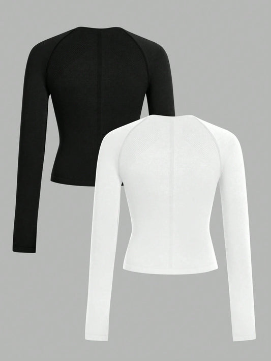 Easithlete T-shirt de sport casual à col montant, manches longues avec imprimé