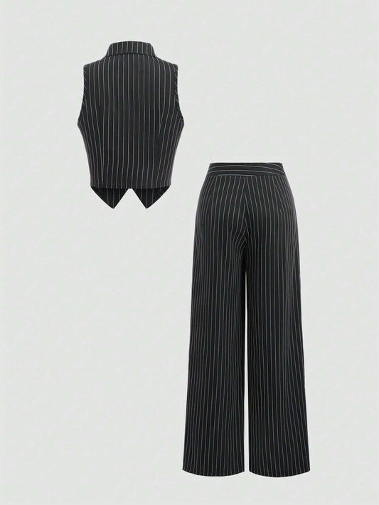 Sweetra 2 pièces Ensemble décontracté femme composé d'un gilet à revers rayé