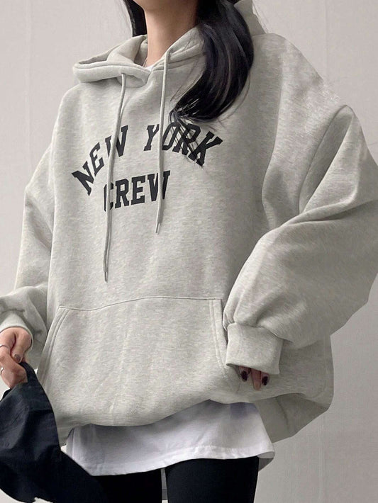 DAZY Sweat-shirt à capuche ample en polaire avec imprimé lettres pour femmes