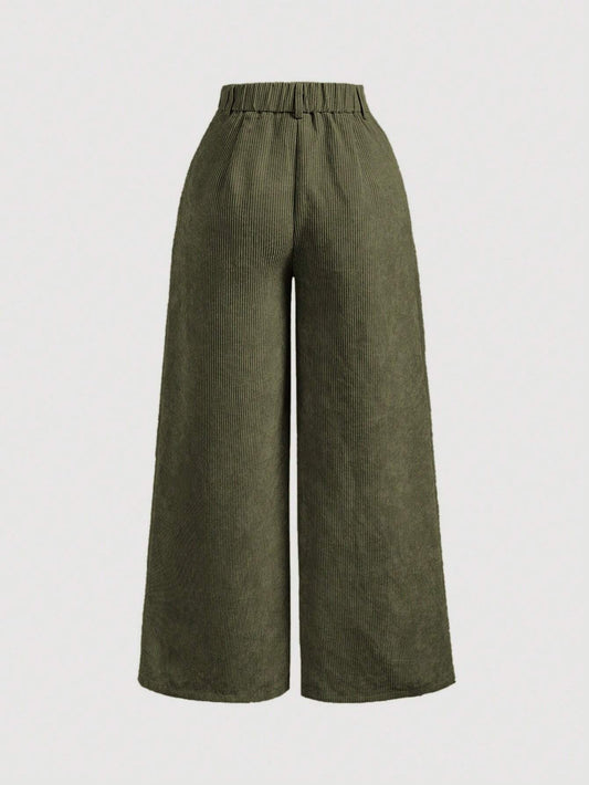 SHEIN MOD Pantalon côtelé vintage unicolore et simple pour femme, pour un usage quotidien