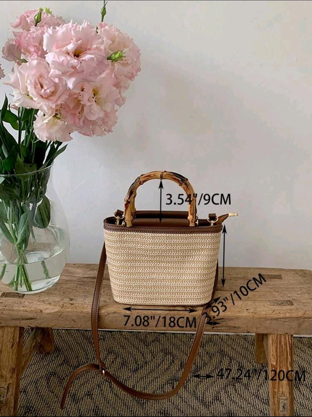 quantité de Handwoven Bamboo Knot Handbag | High-Quality Straw Weaving + PU Leather Patchwork | Japanese Style Artsy