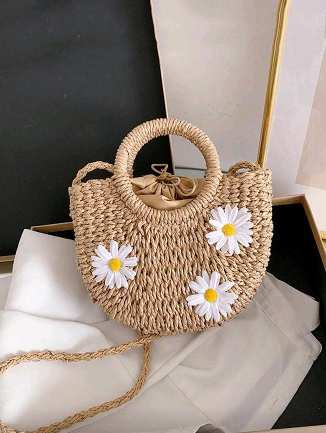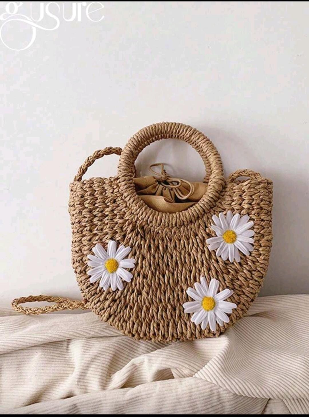 Round S Women Summer Bag Woven Semicircle Bohemia Crossbody Bags Daisy Decor PurseRound S Women Summer Bag Woven Semicircle Bohemia Crossbody Bags Daisy Decor Purse